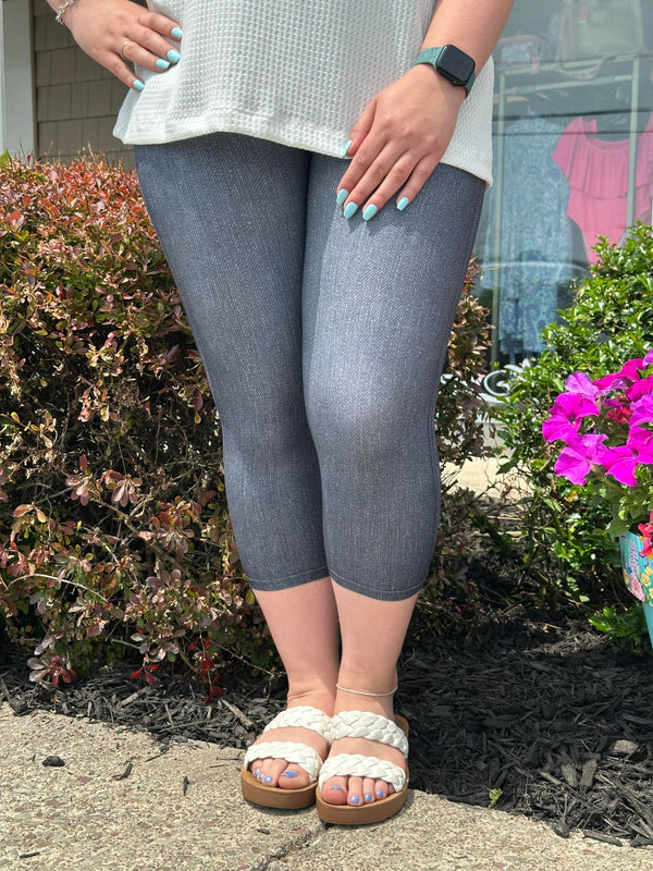 Daisy Butterfly Denim Capri w/ Back Pockets