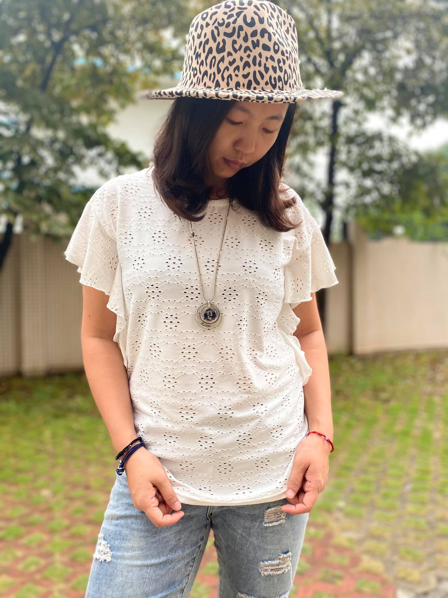 BLACK RUFFLE HALLOW TOP