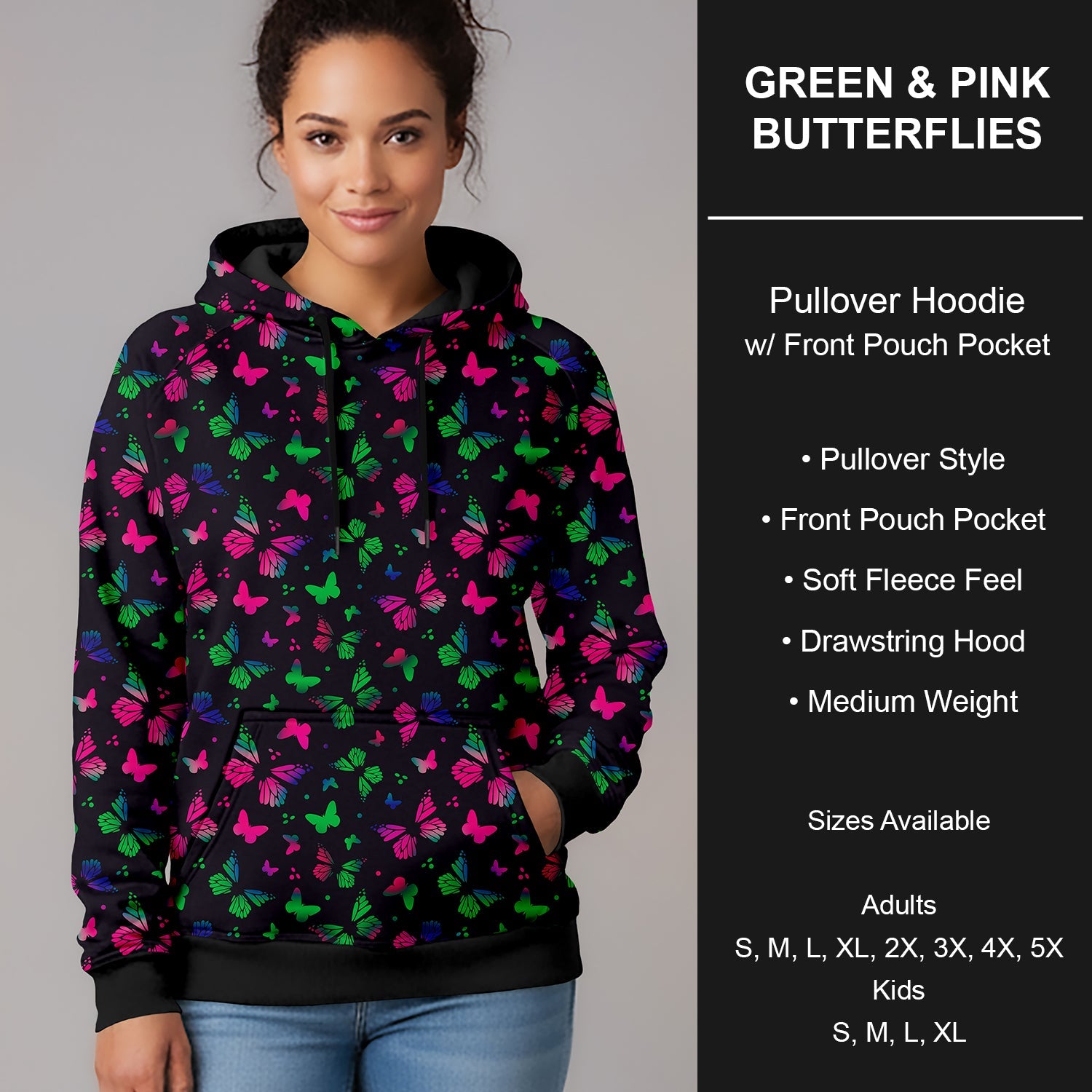 B266 - Preorder Green and Pink Butterflies Pullover Hoodie (Closes 12/17. ETA late Feb.)