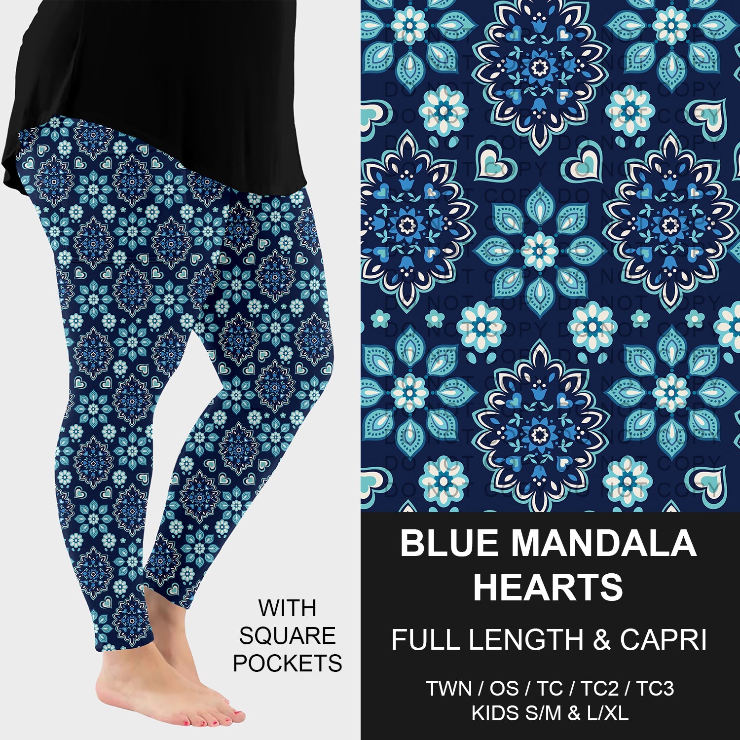 B282 - Preorder Blue Mandala Hearts Leggings w/ Pockets (Closes 3/29. ETA: early June)