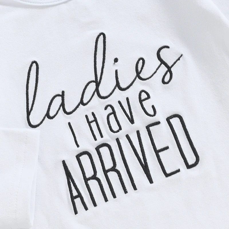 Baby Boy 3Pcs Fall Outfit New To The Crew / Hi I'm New Here / Ladies I Have Arrived Letter Print Long Sleeve Romper and Elastic Checker Pants Beanie Hat Set