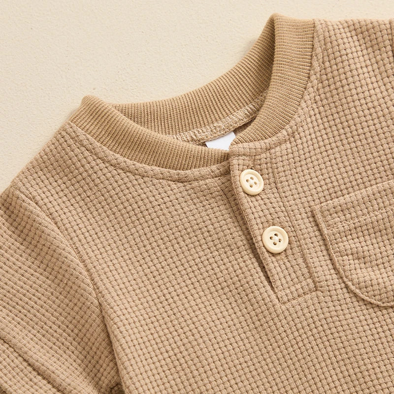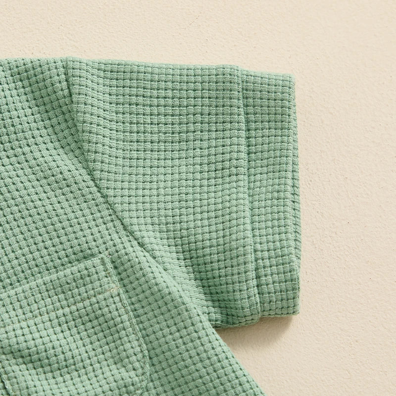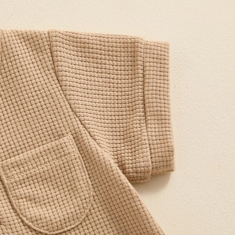 Baby Boy Girl Jumpsuit Summer Short Sleeve Solid Color Waffle Button Romper Playsuit