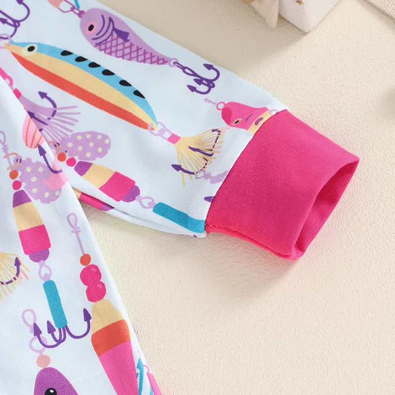 Baby Boys Girls Autumn Casual Romper Long Sleeve Crew Neck Fish Print Zipper Jumpsuit
