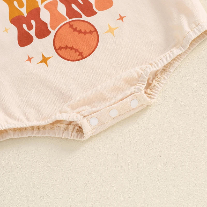 Baby Boys Girls Softball Mini Letter Baseball Print Romper Short Sleeve Round Neck Jumpsuit