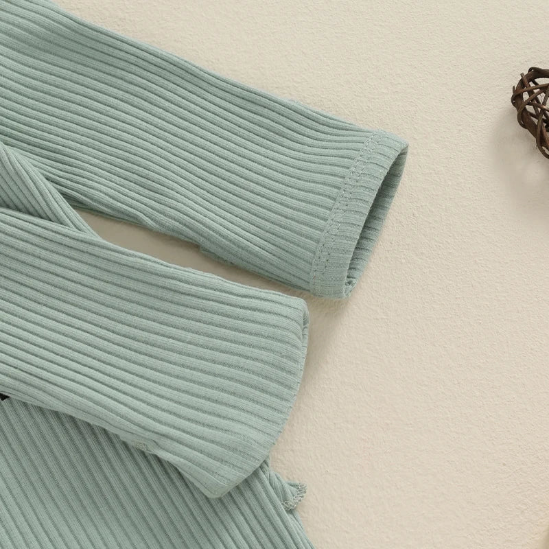 Baby Girl 2Pcs Hello I'm New Here Romper Letter Print Ribbed Long Sleeve Round Neck Full Length Jumpsuit with Headband Set