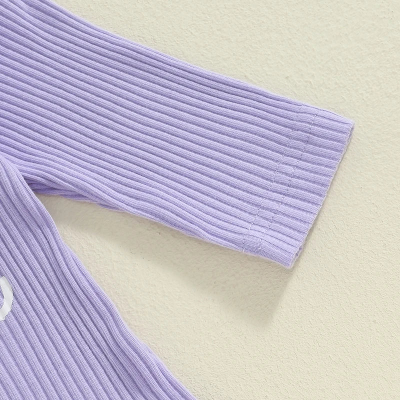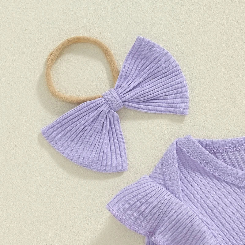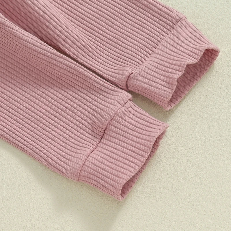 Baby Girls 3Pcs Auntie's Bestie Ribbed Letter Print Long Sleeve Round Neck Ruffled Romper Pants Hair Band Outfit Set