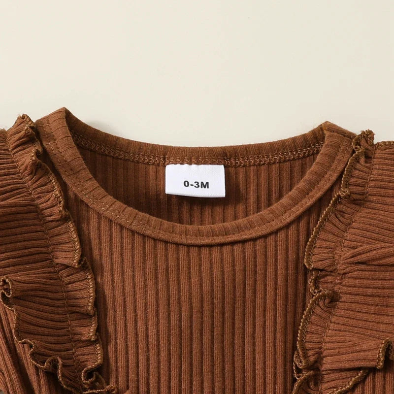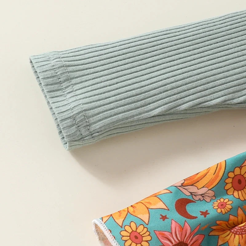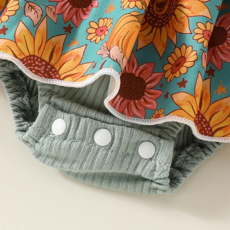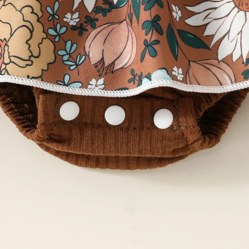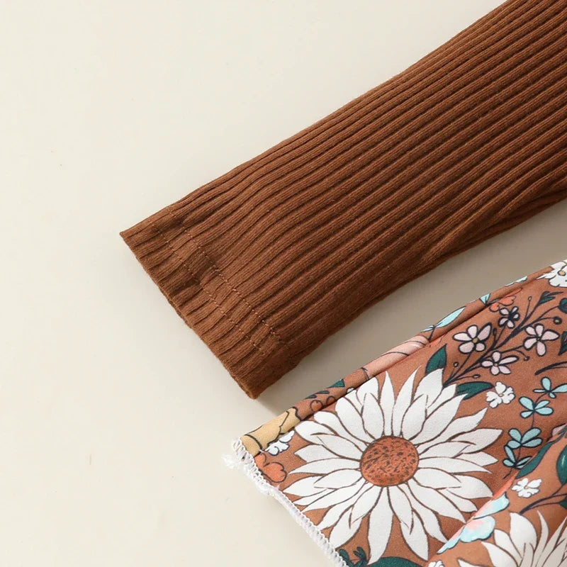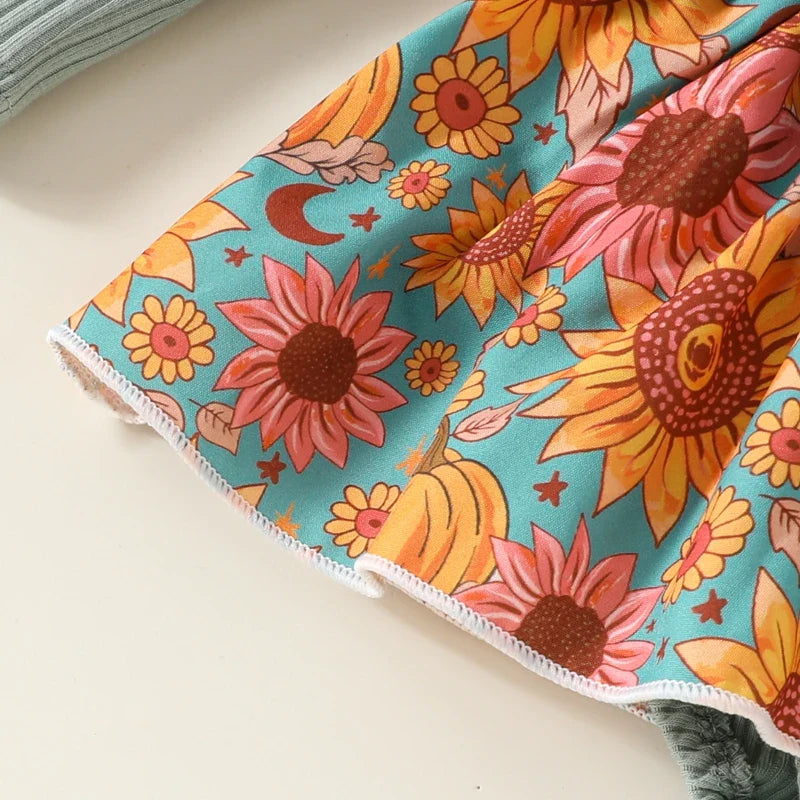 Baby Toddler Girls 2Pcs Fall Outfit Flower Print Ruffle Trim Long Sleeve Romper Dress Skirt Bow Headband Set