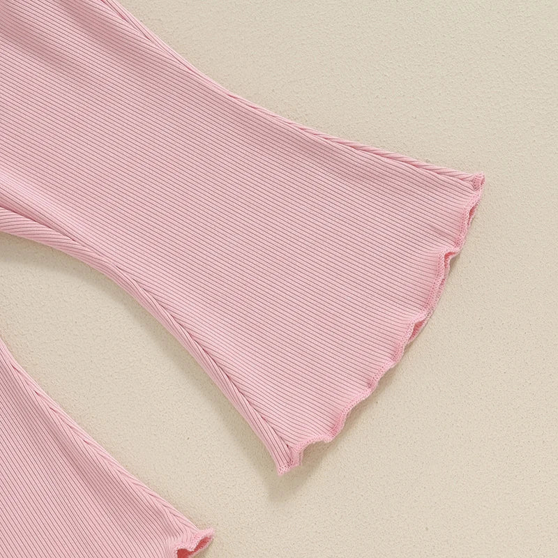 Baby Toddler Girls 2Pcs Mama's Bestie Flying Sleeve Letter Print Short Sleeve Top Flared Bellbottom Long Pants Set Outfit