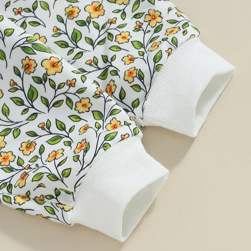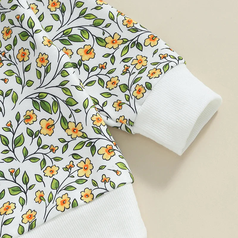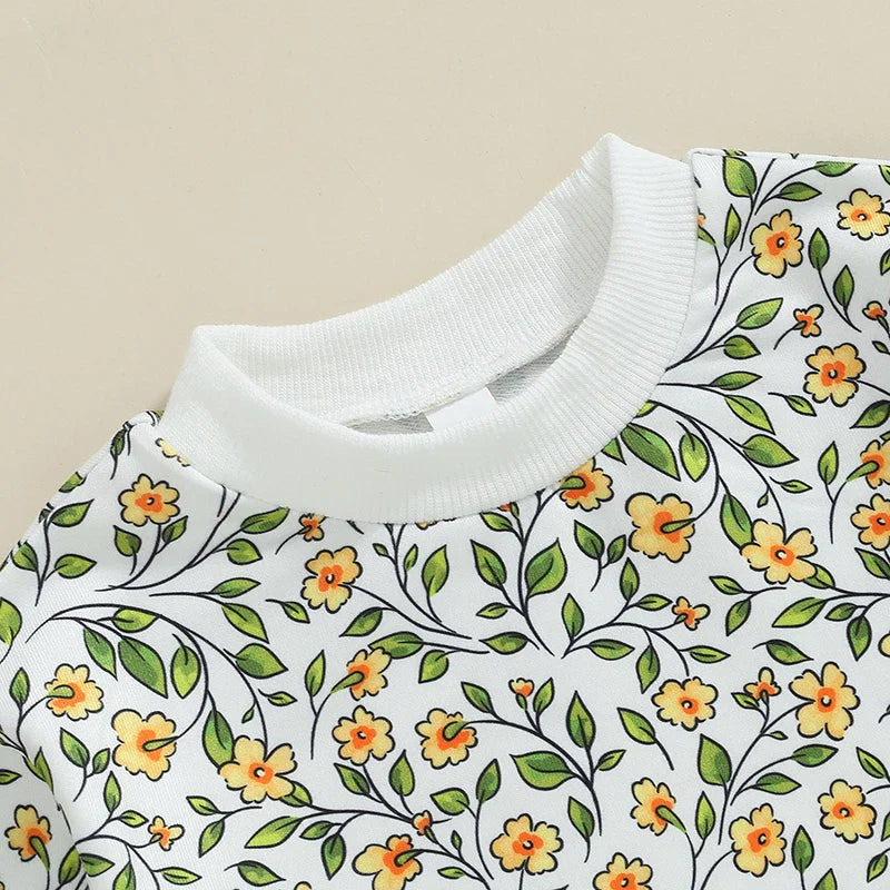 Baby Toddler Girls 2Pcs Outfit Floral Flowers Long Sleeve Crew Neck Top with Elastic Waist Pants Set