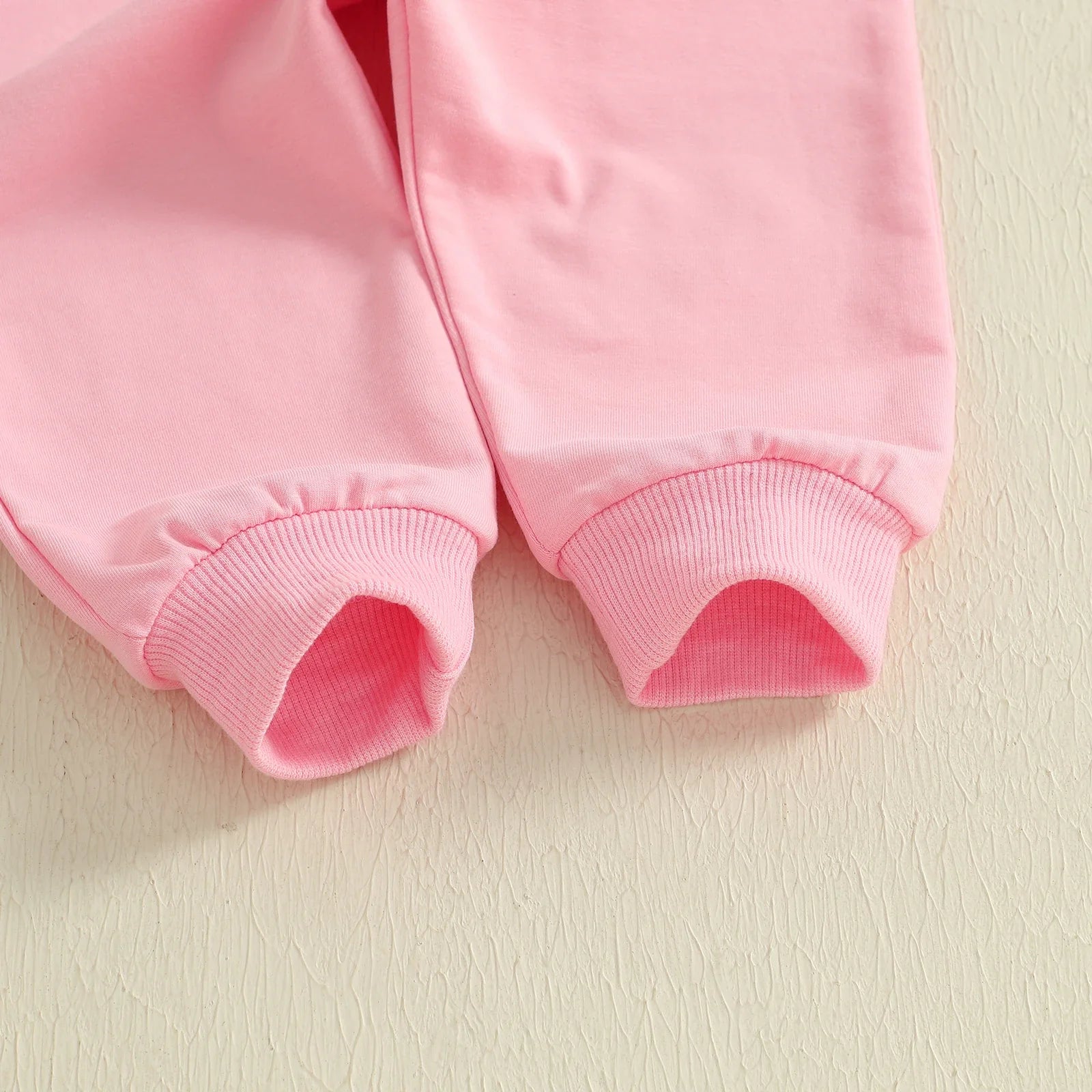 Baby Toddler Girls 2Pcs Thanksgiving Outfit Long Sleeve Turkey Gobble Embroidery Top + Pants Jogger Set Clothes