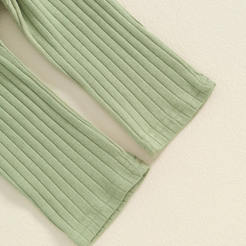 Baby Toddler Girls 3Pcs Outfit Long Flared Sleeve Round Neck Solid Color Top Ribbed Pants Headband Set