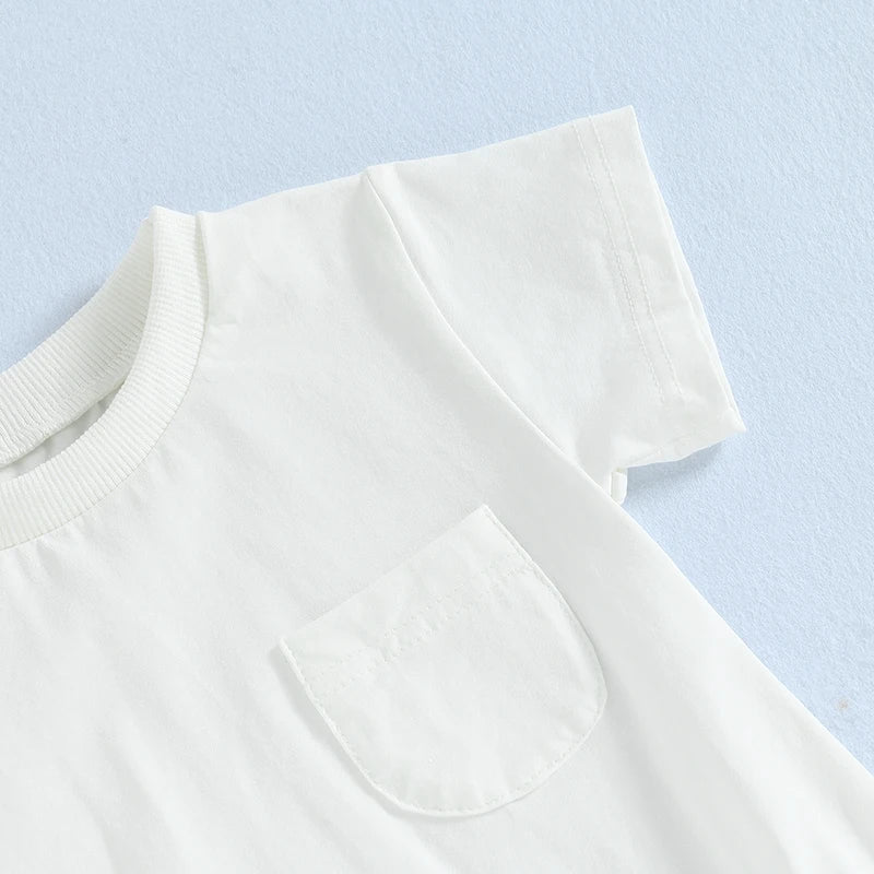 Baby Toddler Girls Boys Basics Bodysuit Short Sleeve Crew Neck Front Pocket Solid Summer Jumpsuit