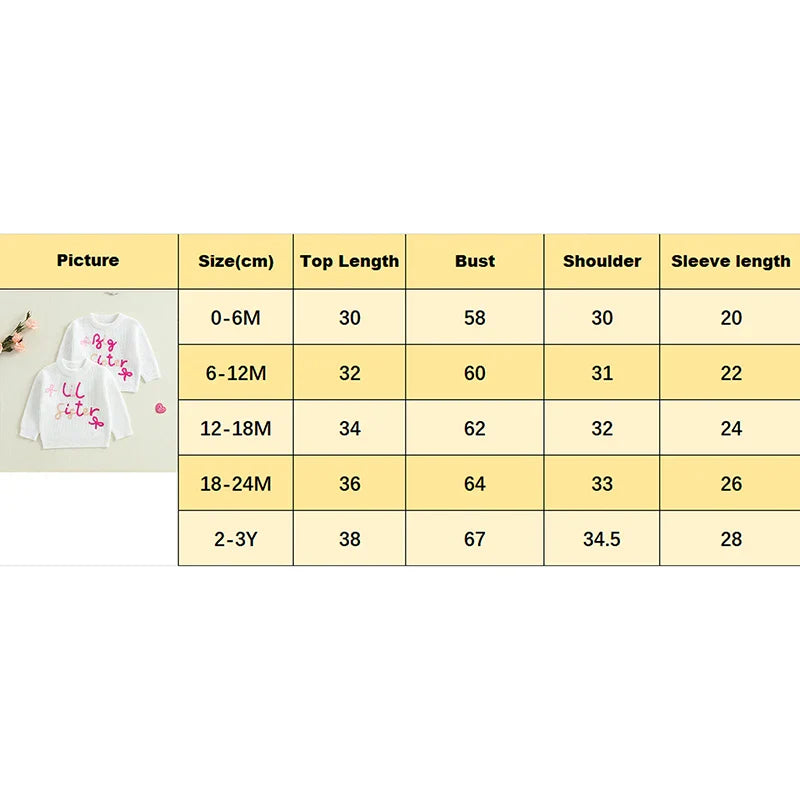 Baby Toddler Girls Lil/Big Sister Sweater Letter Bow Embroidery Crew Neck Long Sleeve Pullover Knit Top