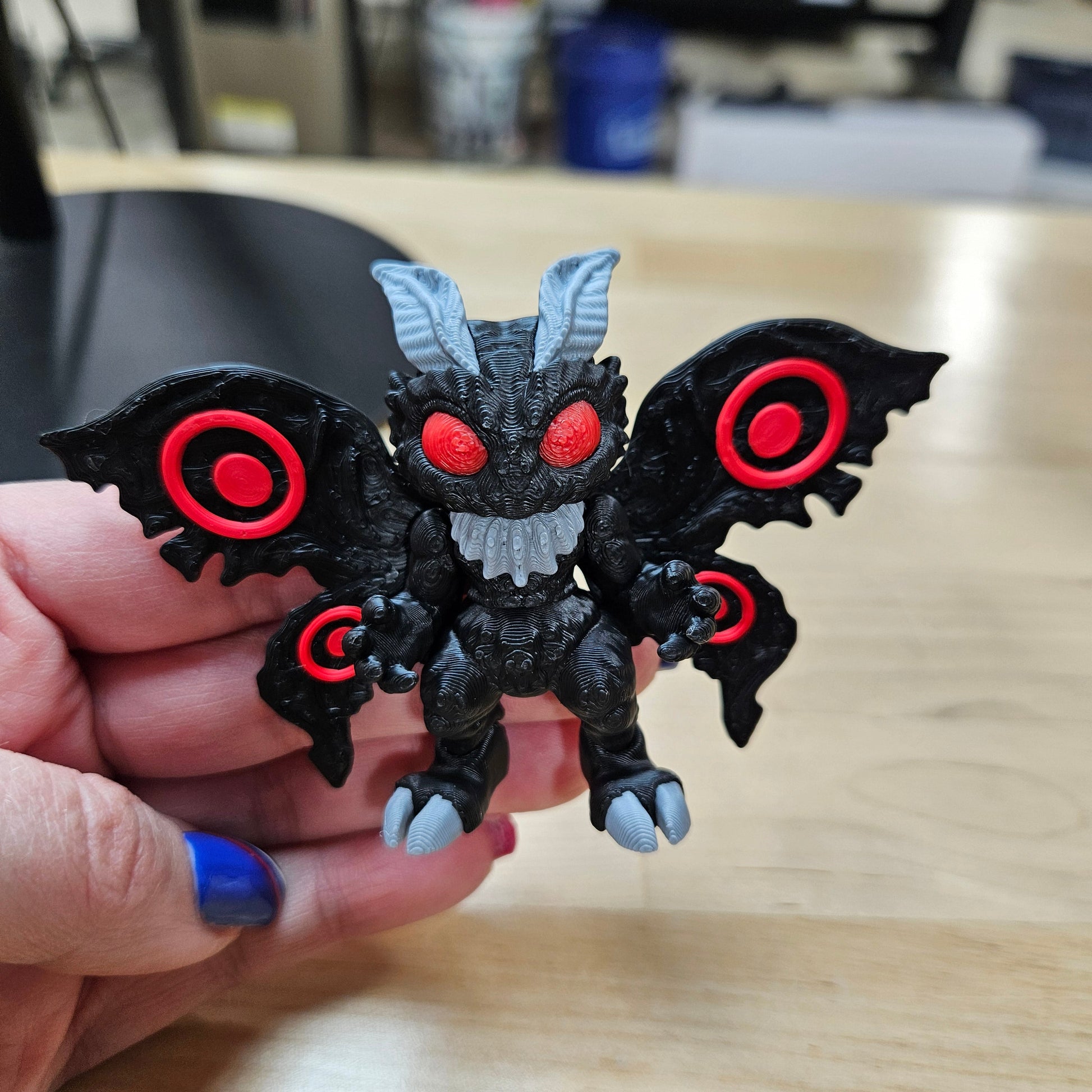Eye-Catching Design – Bold wings, glowing red eyes (non-LED), and intricate textures
