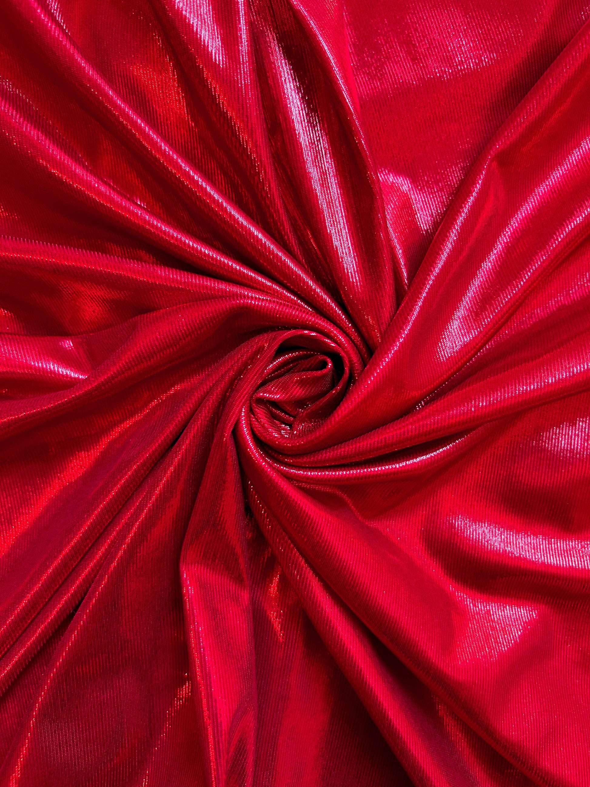 Halo Holographic Button-Up Blouse: Red Tinsel / L/XL