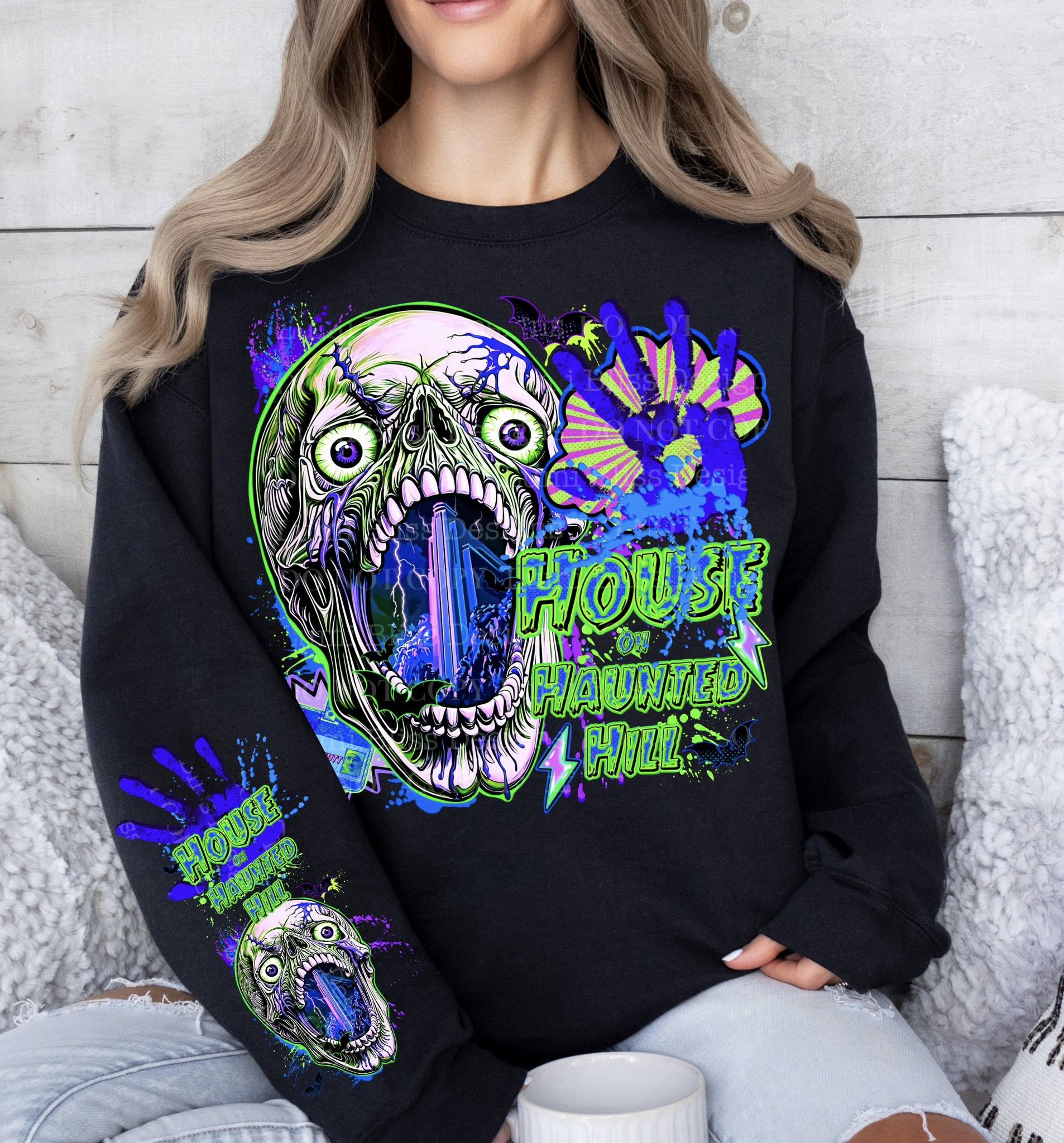 HAUNTED HILL-CREWNECK SWEATSHIRT W/ SLEEVE PRINT