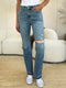 Judy Blue Full Size Mid Rise Destroyed Hem Distressed Jeans